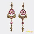 ピンクのお花モチーフ&スワロフスキー、ゴールドのスワロフスキーでコーディネイトされたフックピアス★