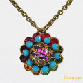 マットタイプのターコイズで縁どった個性的なネックレス。