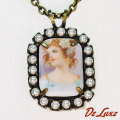 女性の肖像が陶絵付されたカメオペンダント♪