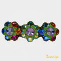 ライトグリーンのお花モチーフに、マルチカラーやブルーグリーン系オーロラスワロフスキーの花びら、花芯には淡いパープルのスワロフスキーがコーディネイトされた彩り綺麗なブローチです☆