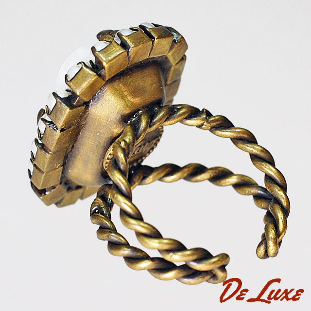 ビンテージストーンに女性の肖像が陶絵付けされたカメオリング。